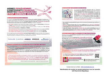 Parce que l'armement vendu à Israël aujourd'hui servira aux massacres de demain, parce que les partenariats commerciaux qui enrichissent les vendeurs de mort israéliens les renforcent pour préparer leurs prochaines offensives mortifères, plus que jamais, nous devons poursuivre et amplifier notre mobilisation.