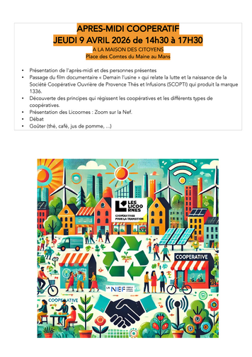 ✨ Cet après-midi est organisé par des sociétaires conventionné.es de la Nef avec l'appui de l'association MPCAS-MNLE72, dans le cadre d'un cycle de 3 rencontres programmées en Avril, Juin et Octobre 2026.